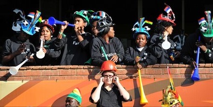 Sin duda, el sonido de 30 o 40.000 espectadores excitados soplando con todas sus fuerzas unas trompetas de plástico llamadas Vuvuzelas, que todos conocemos ya tras el uso masivo de estas en los partidos del mundial de fútbol de Sudafrica y que tantas noticas por exceso de ruido están generando puede provocar diversas molestias y hasta perdida auditiva por su exposición continuada, pero una masa sonora en constante movimiento de estas características , aleatoria y que se origina en un mismo espacio es algo sorprendente, pero sobre todo y lo mas espectacular e interesante para mi es como de forma colectiva, como conducta social, sin intención alguna de provocarlo y sin ningún tipo de conductor se genera y nace un nuevo y hasta la fecha nunca elaborado paisaje sonoro, concierto multifocal, instalación site specific o como le queramos llamar tan espectacular y compleja de 90 minutos de duración. Me parece una experiencia increible.Otro efecto que pienso que va a provocar el uso y comercio de la vavuzela en masa será el empleo de esta en todos los países del mundo, incorporándose de forma natural en todas las culturas y en el espacio público para múltiples celebraciones, manifestaciones, eventos, fiestas o reuniones.